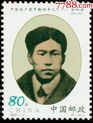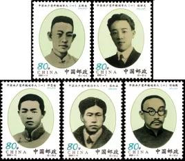 為紀(jì)念在解放全中國(guó)的革命事業(yè)中嘔心瀝血,英勇戰(zhàn)斗,壯烈犧牲的中國(guó)共產(chǎn)黨的無數(shù)英雄兒女,中國(guó)郵政在中國(guó)共產(chǎn)黨建黨80周年之際,發(fā)行了《中國(guó)共產(chǎn)黨早期領(lǐng)導(dǎo)人(一)》紀(jì)念郵票1套5枚,表達(dá)對(duì)革命先輩們的崇高敬仰。這是2001年6月28日發(fā)行的紀(jì)念郵票,設(shè)計(jì)者是王虎鳴。