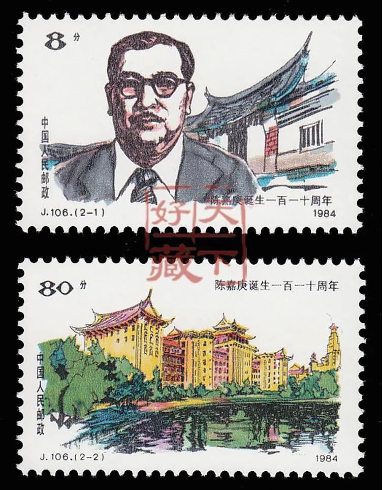 1984年10月21日,我國(guó)郵電部為了表達(dá)中國(guó)人民對(duì)著名愛(ài)國(guó)僑領(lǐng)的深深懷念,發(fā)行了一套陳嘉庚誕辰110周年紀(jì)念郵票。此套郵票共2枚,由我國(guó)著名郵票設(shè)計(jì)家黃里設(shè)計(jì)。