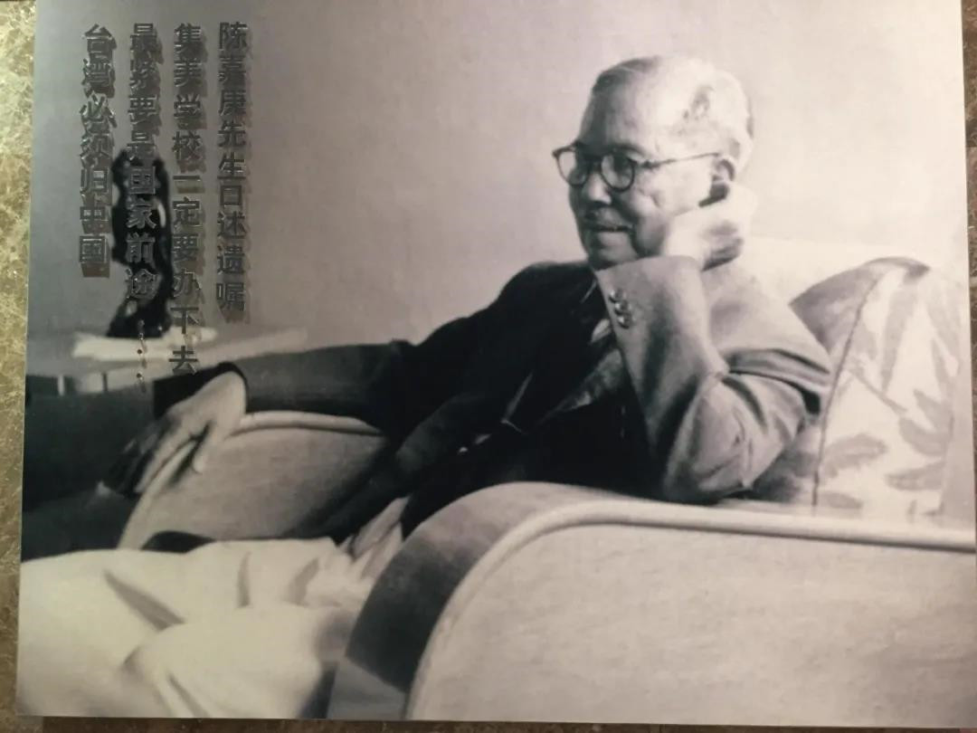 1984年2月9日,在廈門(mén)經(jīng)濟(jì)特區(qū)視察的鄧小平來(lái)到廈門(mén)大學(xué)和集美學(xué)村,并參觀了集美陳嘉庚紀(jì)念館,深為感佩?;乇本┖螅銚]毫為即將出版的《陳嘉庚畫(huà)冊(cè)》題詞:"華僑旗幟民族光輝陳嘉庚"。這是他將毛澤東為陳嘉庚書(shū)寫(xiě)的一件條幅:"華僑旗幟民族光輝"借用過(guò)來(lái)的。這件條幅,毛澤東曾在1945年11月抗戰(zhàn)勝利后,在重慶時(shí)送給陳嘉庚的題書(shū)。
