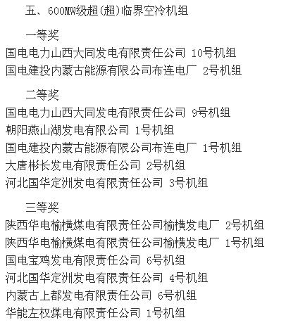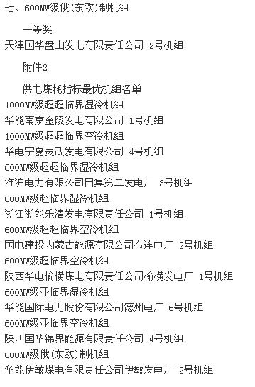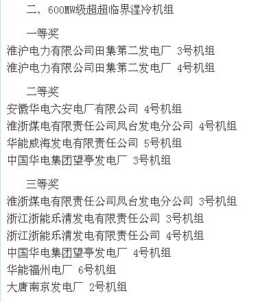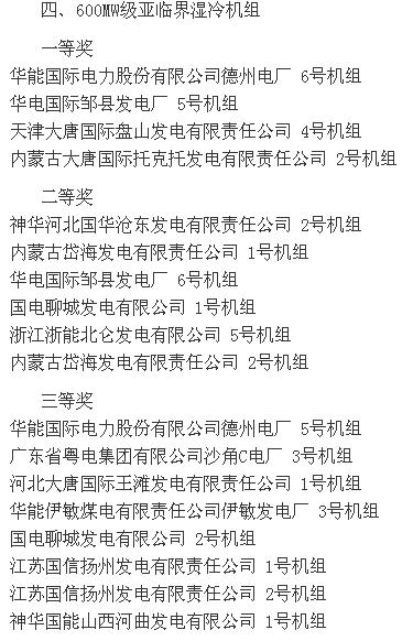 2015全國火電600MW級機組年度競賽結(jié)果