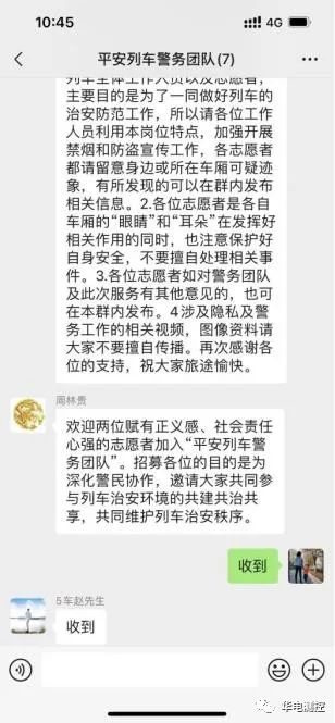 2022年10月14日,他踏上了開往浙江的高鐵。因疫情高鐵人員安排緊張,高鐵上工作人員特向乘車旅客發(fā)出邀請(qǐng),希望有正義感、社會(huì)責(zé)任心強(qiáng)的志愿者共同參與列車治安環(huán)境的共建共治共享,共同維護(hù)列車治安秩序。作為黨員的他第一時(shí)間響應(yīng)號(hào)召,加入“平安列車警務(wù)團(tuán)隊(duì)”,成為了一名行治安聯(lián)防隊(duì)員。列車行駛過程中,他同其他志愿者發(fā)揮著“消息樹”的作用,實(shí)時(shí)將列車情況反饋給乘警。