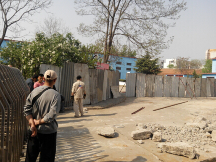 由于受北環(huán)路改造工程影響,自2015年4月24日起,秦皇島市建設(shè)局開始對我公司入廠大門、廠區(qū)主路和門衛(wèi)室進行改造,經(jīng)過了先期對改造項目的綜合考慮、圖紙設(shè)計、項目談判,該工程現(xiàn)已開始施工。面對大幅度的施工和改建,公司副總經(jīng)理楊廣宇、管理部后勤總務(wù)聶鳳秋等人共同商議廠區(qū)安全防護預(yù)案。車間調(diào)度張勇清、班組長尹新磊接到任務(wù)后第一時間進行了工作安排,其他同事也紛紛積極響應(yīng),大家火速的行動起來,找材料框架、下固定枝桿、捆綁擋板、共同商議封堵位置等。恰逢周末休息時間,大家頂著烈日,沒有一句怨言,齊心協(xié)力、積極配合,最終圓滿的完成了廠區(qū)的安保工作。既保證了廠區(qū)的安全,又未耽誤改造項目的施工進度。