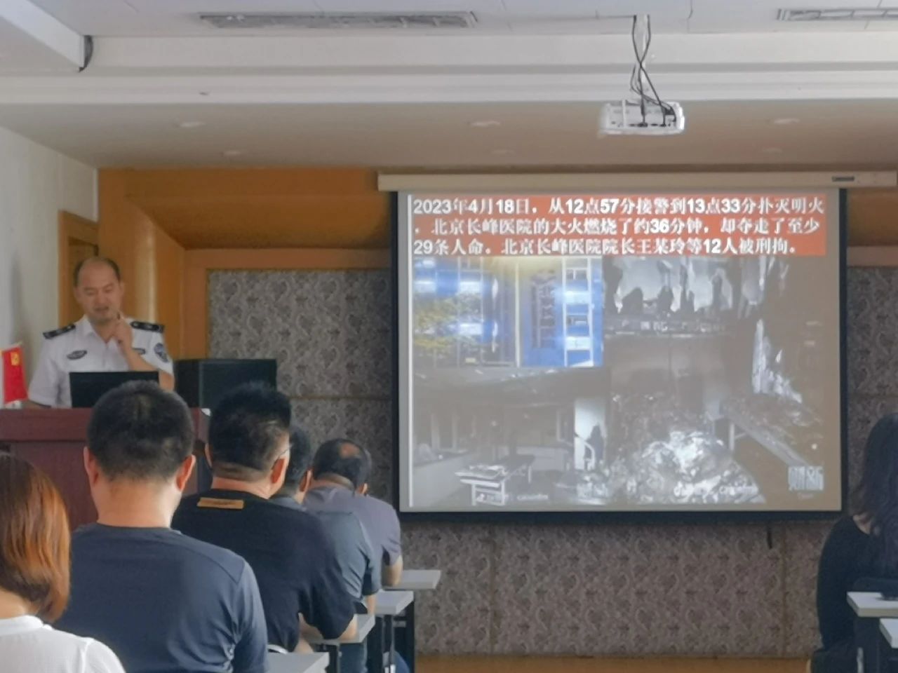宣講會上,周教官為大家普及了消防知識,通過“北京某醫(yī)院大火”、“央視大樓火災(zāi)”等火災(zāi)現(xiàn)場圖片令在座所有人深刻認(rèn)識到火災(zāi)的無情與可怕。周教官結(jié)合工作和生活實(shí)際,從如何預(yù)防電氣火災(zāi)、如何自救與逃生、如何正確使用消防器材等方面均做了深入淺出的講授,并特別提醒全體員工要始終保持安全意識,堅(jiān)決克服盲目樂觀,杜絕松懈麻痹,真切落實(shí)各項(xiàng)防范措施,確保人身與財產(chǎn)安全。