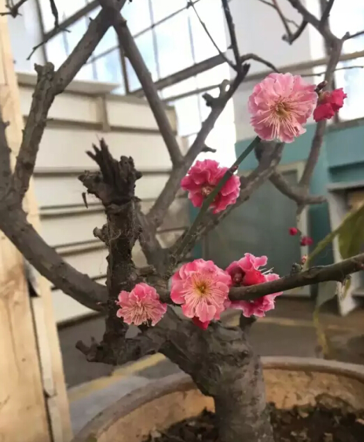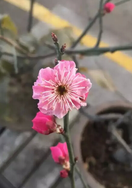 也許是工作的繁忙讓我經(jīng)常忽略周圍的環(huán)境變化,今天不經(jīng)意的一瞥,竟然發(fā)現(xiàn)了幾朵嬌艷的粉色?。?!那是保潔姐放在車間一盆不起眼的“干樹(shù)杈”,我走近一看,竟然冒出了好幾朵粉嫩的花,有的含苞待放、有的正在盛開(kāi),湊近一聞一股黯然凜冽的幽香撲鼻而來(lái),沁人心脾。