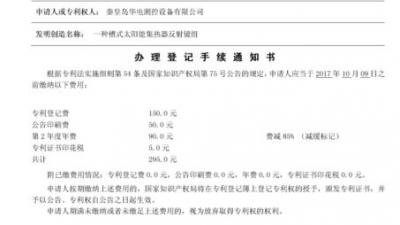 公司于2016年12月16日提交的“一種槽式太陽(yáng)能集熱器反射鏡組”(專利號(hào):201621383993.6)專利已被中華人民共和國(guó)國(guó)家知識(shí)產(chǎn)權(quán)局授予專利權(quán)。此項(xiàng)專利的授權(quán),標(biāo)志著公司已經(jīng)擁有39項(xiàng)自主知識(shí)產(chǎn)權(quán)。 本實(shí)用新型公開(kāi)More