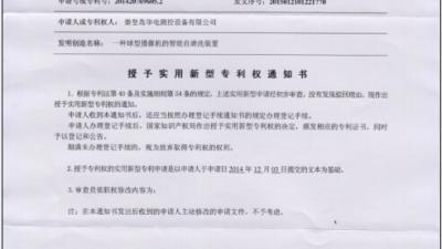 新春臨近,捷報(bào)頻傳! 公司于2014年12月03日提交的“一種球型攝像機(jī)的智能自清洗裝置”專利已被中華人民共和國國家知識(shí)產(chǎn)權(quán)局授權(quán)實(shí)用新型專利權(quán)。 本實(shí)用新型公開了一種球型攝像機(jī)的智能自清洗裝置,屬More